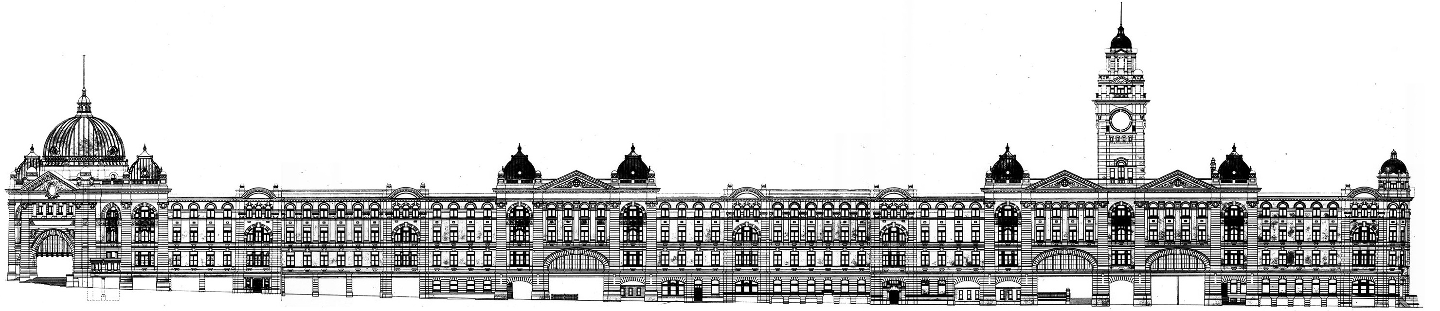 This is a copy of the lithograph of Flinders Street Station, street elevation that was signed off by the builder Peter Rodger in September 1905.